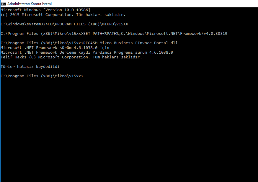 64 bit işletim sistemleri için netframework4 için regasm komut dizini aşağıdadır.