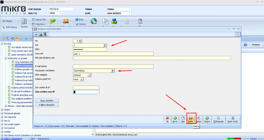 MİKRO’DA YENİ KULLANICI OLUŞTURMA İŞLEMİ